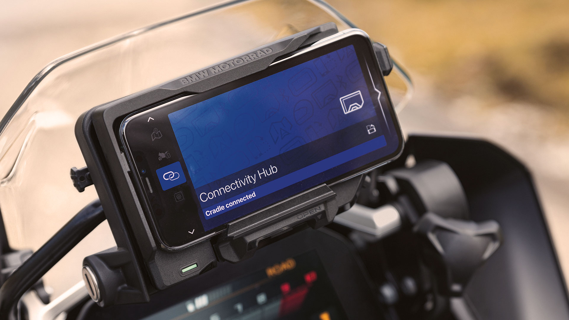 I prodotti BMW Motorrad ConnectedRide includono anche i nostri accessori intelligenti per la tua moto, che ti assistono durante i tuoi tour. Innanzitutto il ConnectedRide Navigator, che è molto più di un dispositivo di navigazione. Infatti, collega molti prodotti ConnectedRide e il tuo smartphone sulla sua interfaccia intuitiva, trasformandosi in un hub per la telefonia, lo streaming e la navigazione. Se invece preferisci usare il tuo smartphone come dispositivo di navigazione, BMW Motorrad ConnectedRide Cradle è esattamente ciò che fa per te.