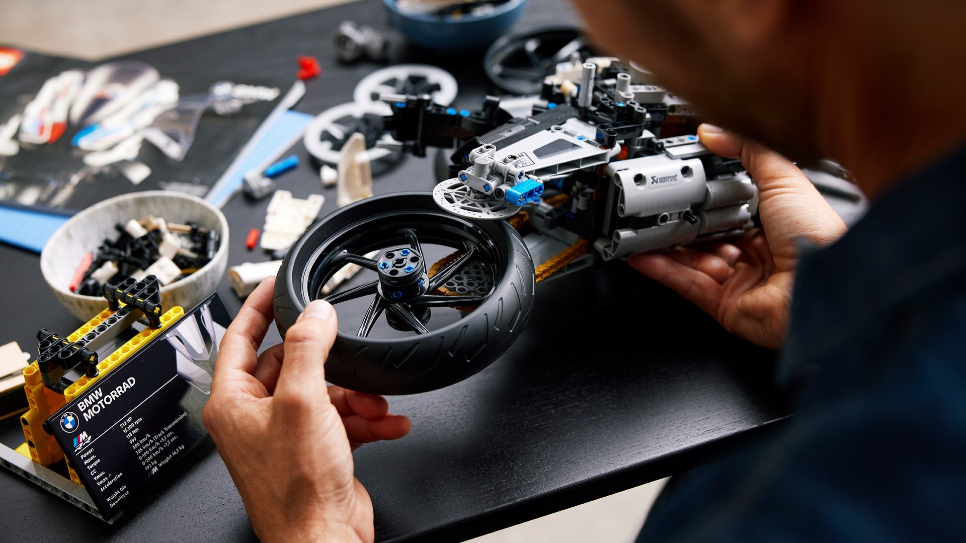 La M RR è il primo modello M di BMW Motorrad, una moto pensata per chi cerca sempre le massime prestazioni. Per chi dà valore a ogni dettaglio, ogni millimetro, ogni caratteristica tecnica. Per chi ama la sensazione di adrenalina e ama viverla per strada, in pista e ora, finalmente, anche a casa. In stretta collaborazione con i progettisti di LEGO® Technic abbiamo realizzato il più grande modello di moto LEGO® Technic e il primo modello M LEGO®: la M RR LEGO® Technic in scala 1:5. L'obiettivo era chiaro fin dall'inizio: creare un modello che rispecchiasse anche in fase di progettazione la cura e la precisione che contraddistinguono la moto originale. Ogni volta che i componenti non riuscivano a soddisfare i requisiti, li abbiamo riprogettati, esattamente come nella moto originale. Perché è questo il concetto alla base del motto "Born on the racetrack". Build at home.